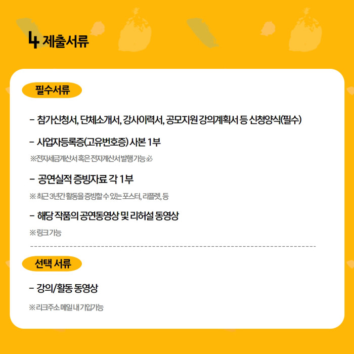 ④ 경기문화재단은 다음 각호에 해당하는 신청에 대하여 승인 불허 혹은 사후에 계정을 해지할 수 있습니다.