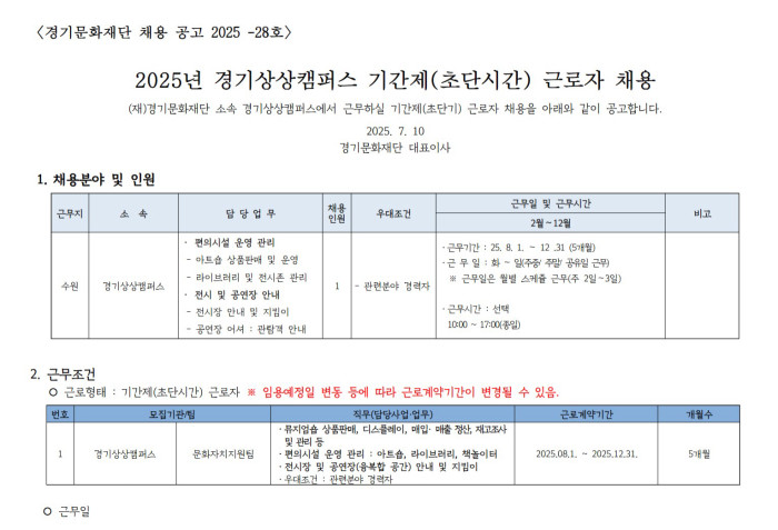 경기상상캠퍼스 제2차 초단시간 근로자 채용