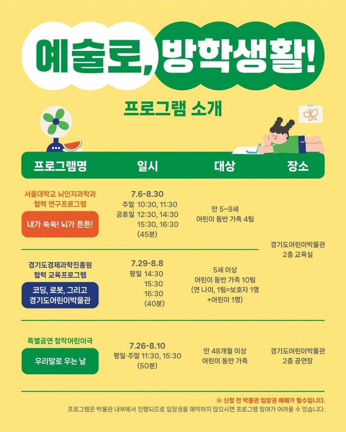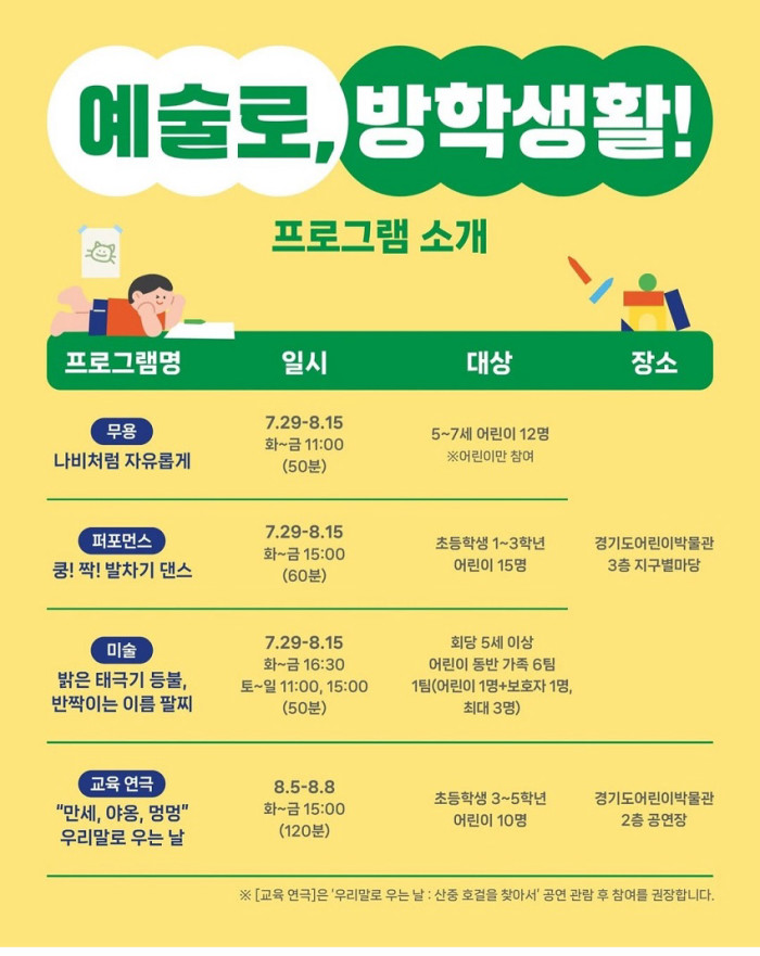 [경기도어린이박물관] 예술로, 방학생활! (7/29~8/15)