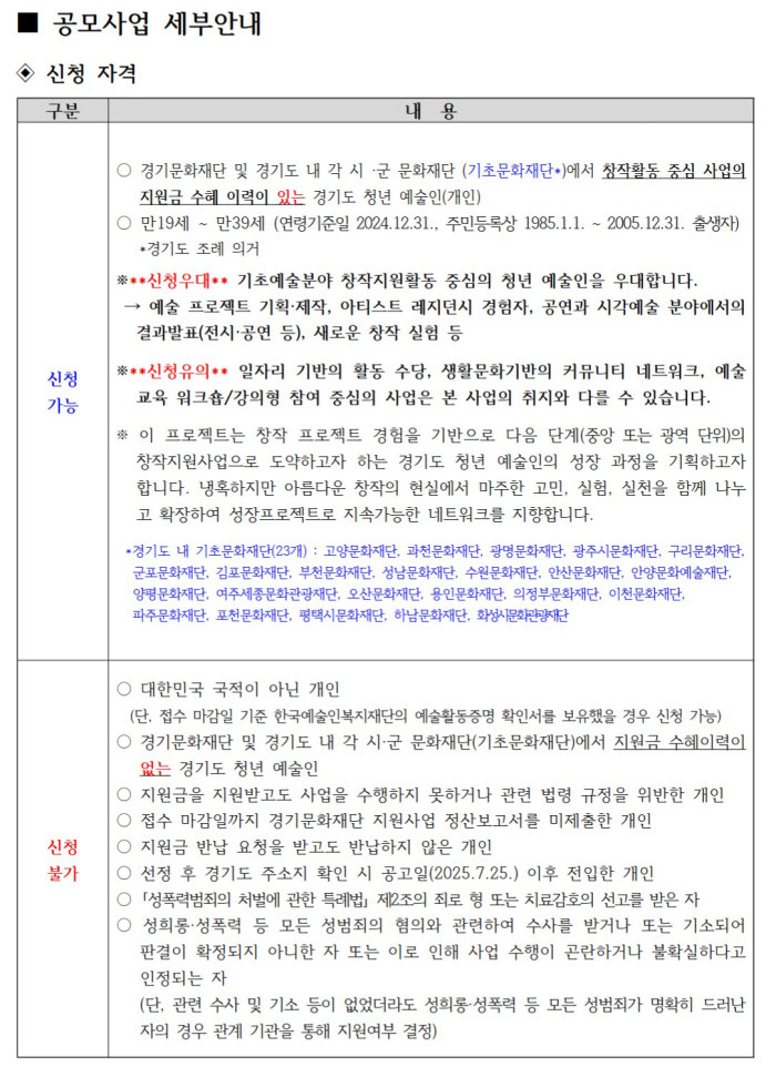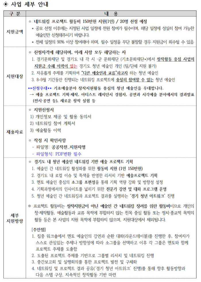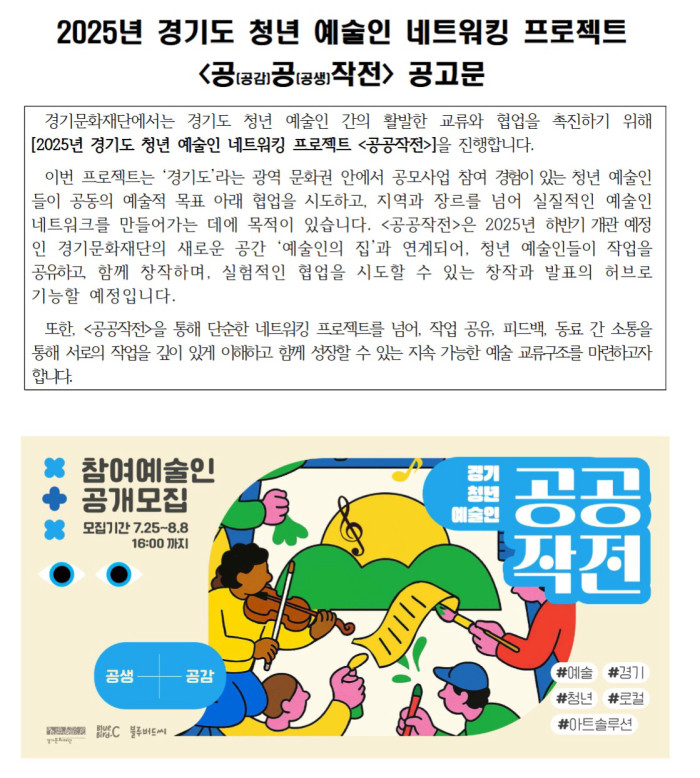 2025년 경기도 청년 예술인 네트워킹 프로젝트 <공공작전> 참여자 공모