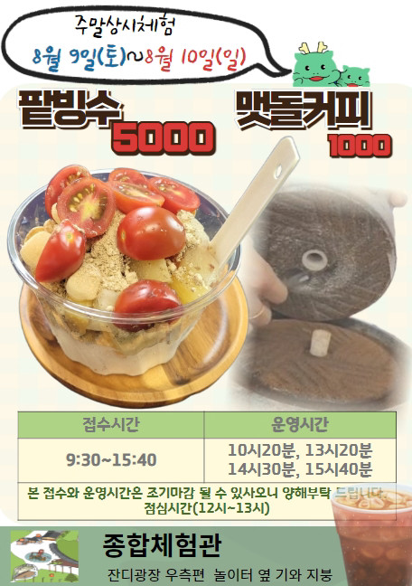 - 팥빙수 만들기 : 5,000원 (카드결제만 가능)