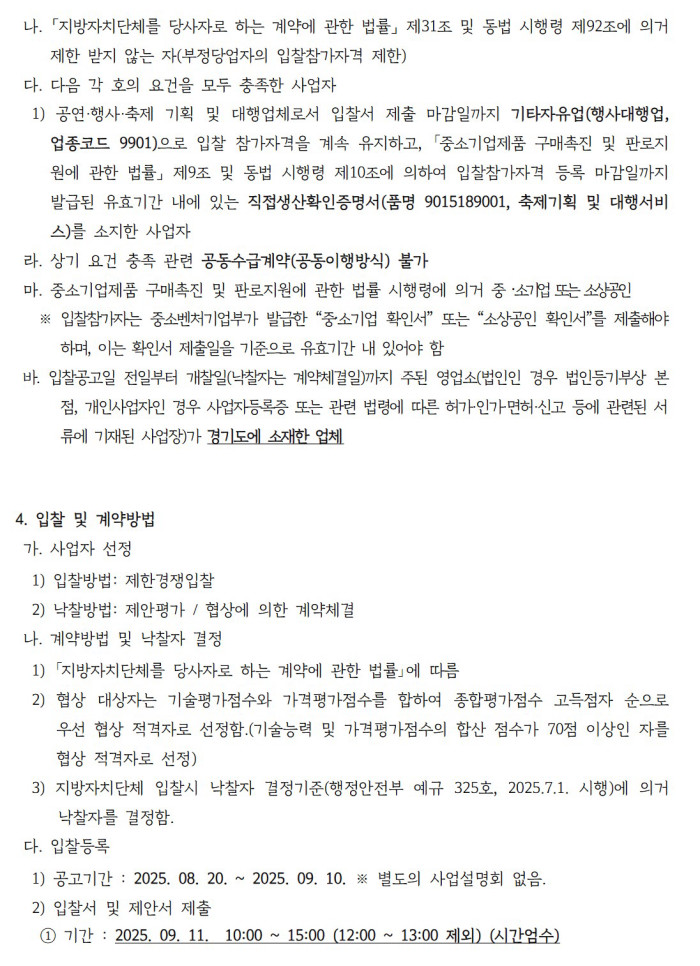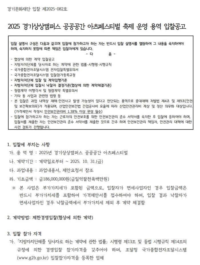 2025 경기상상캠퍼스 공공공간 아츠페스티벌 축제 운영 입찰 공고