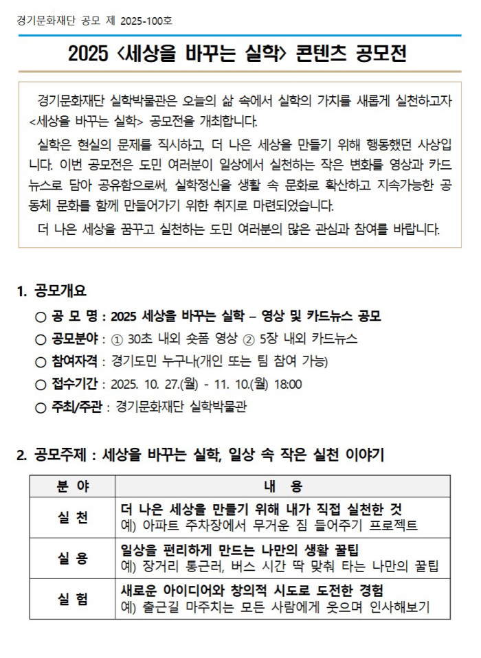2025 <세상을 바꾸는 실학> 콘텐츠 공모전