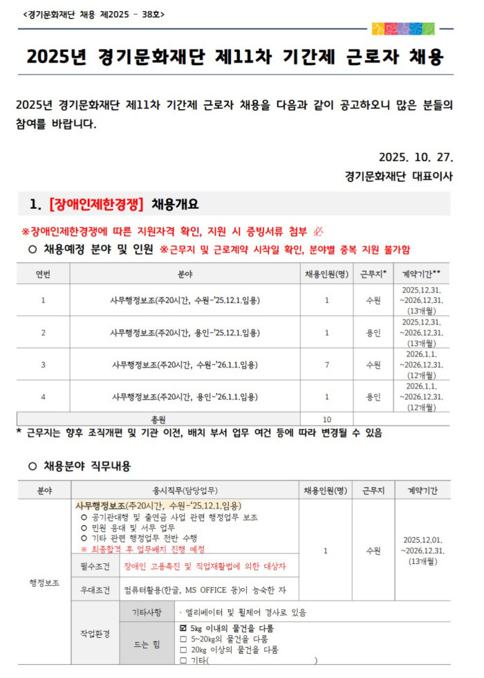 2025년 경기문화재단 제11차 기간제 근로자 채용