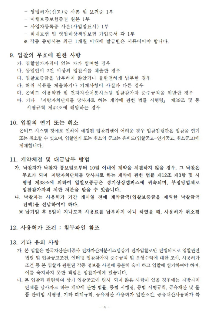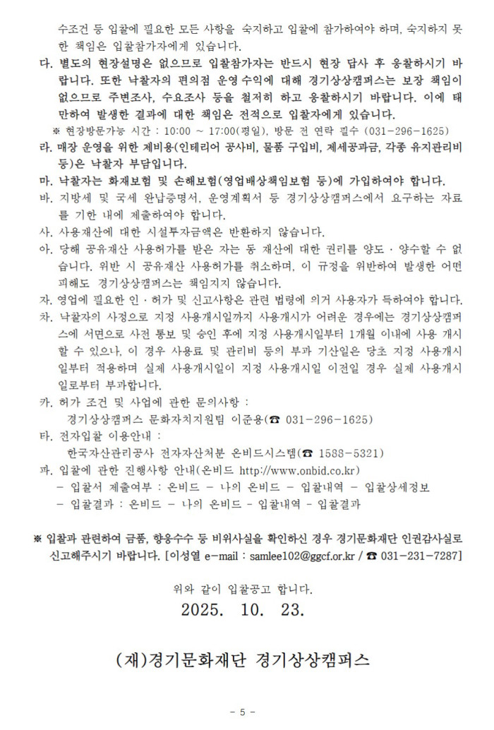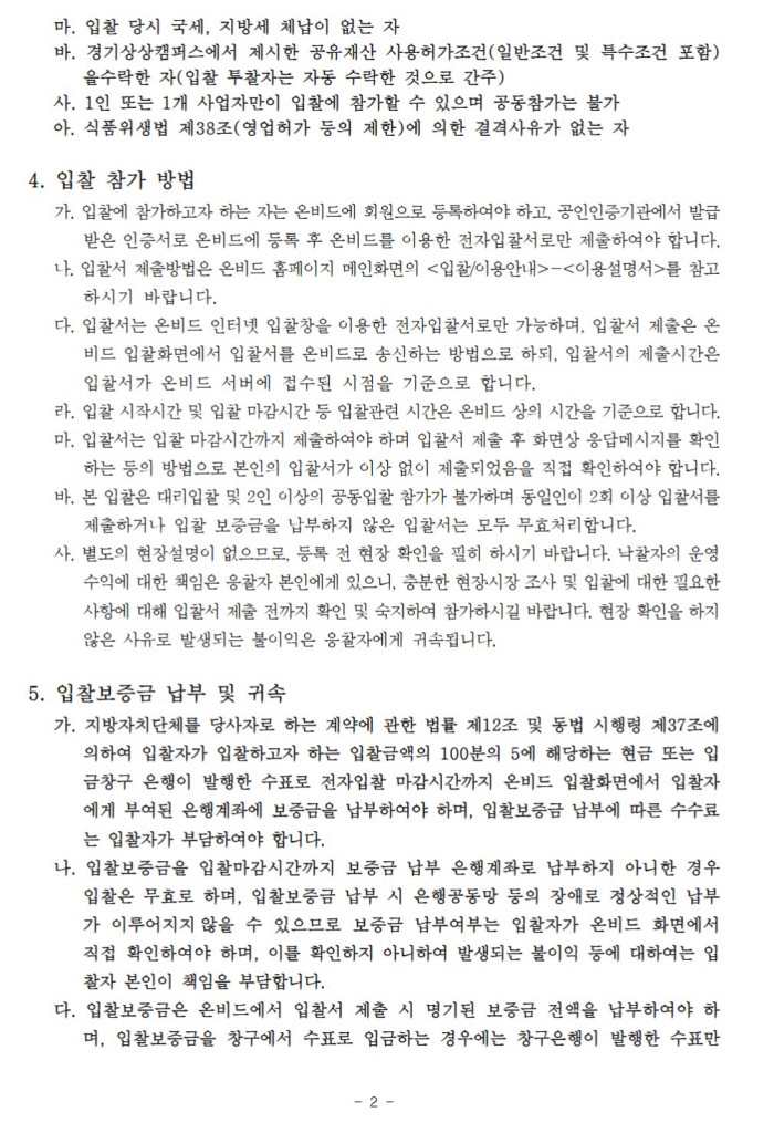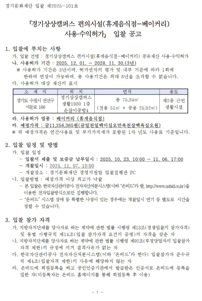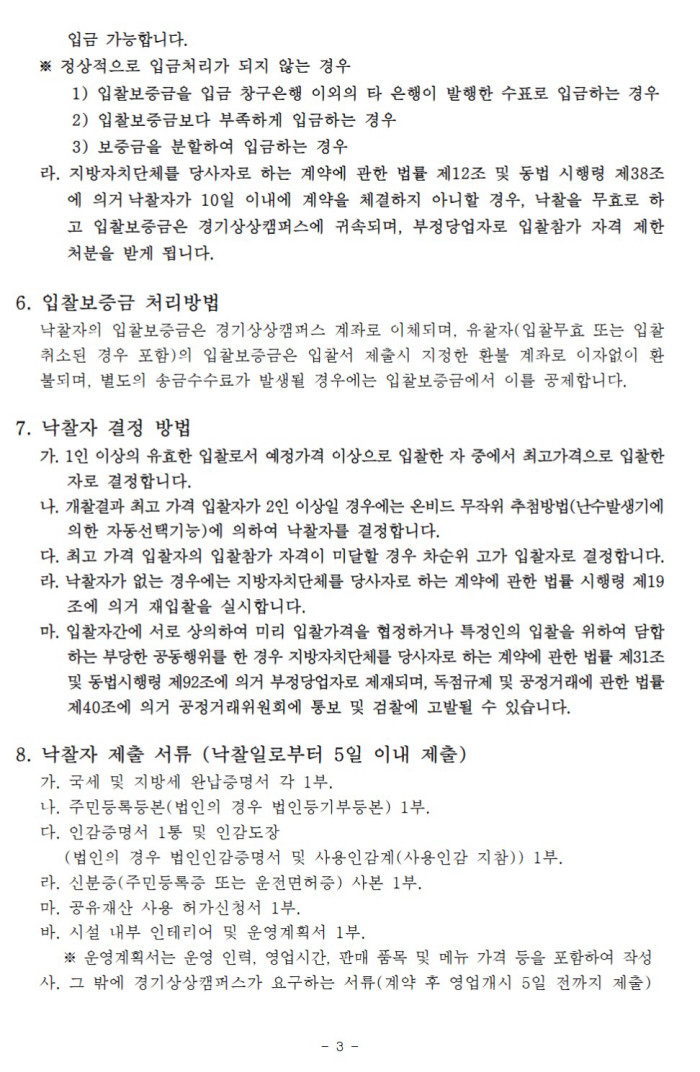 경기상상캠퍼스 편의시설(휴게음식점_베이커리) 사용·수익 허가 입찰 공고