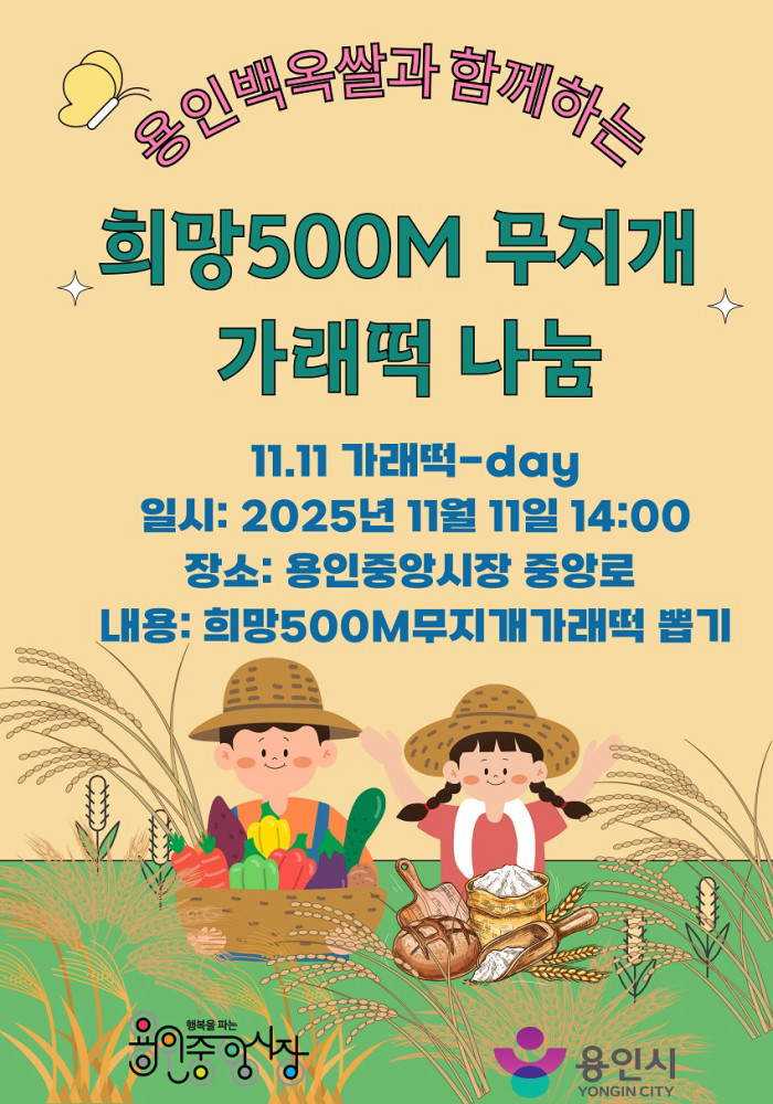 11월 11일 용인중앙시장에서 500m 무지개가래떡뽑기 행사를 합니다!