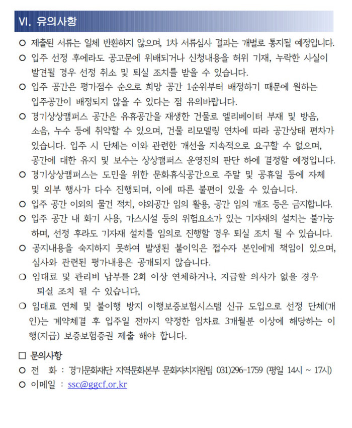 2. 경기문화재단의 고지가 있고 난 뒤 효력 발생일까지 어떠한 이의도 제기하지 않았을 경우, 개정된 가이드를 승인한 것으로 간주합니다.