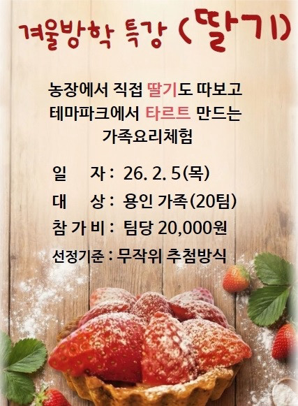[용인농촌테마파크] 2026년 겨울방학 특강 딸기체험객 모집 (~1/29)