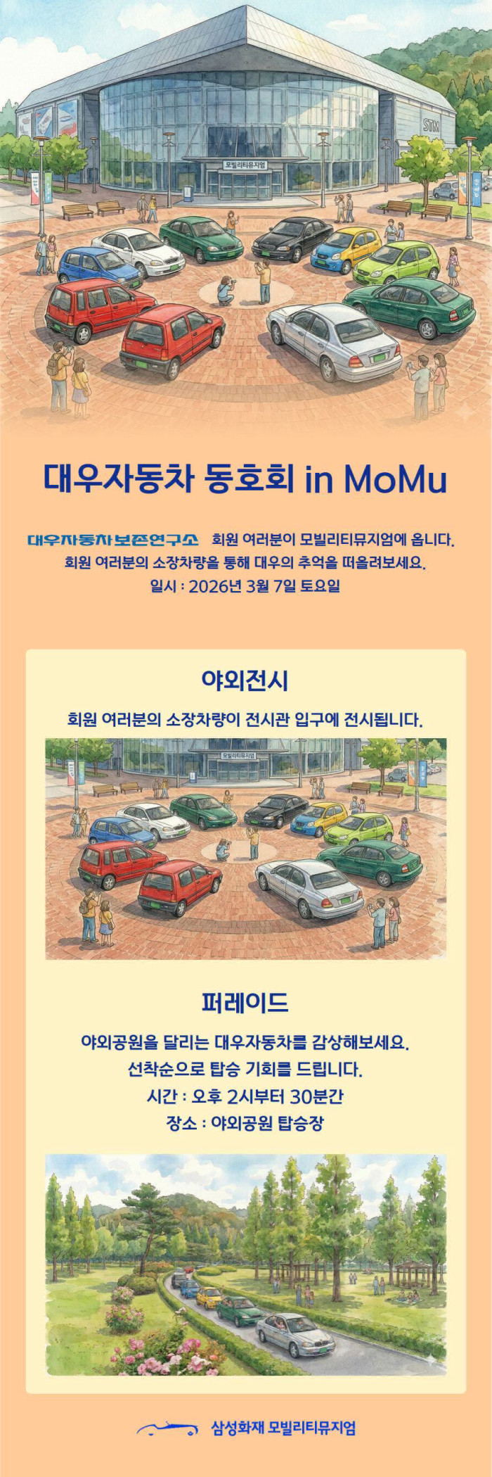 대우자동차보존연구소 회원 여러분이 2026년 3월 7일 토요일 모빌리티뮤지엄에 옵니다.