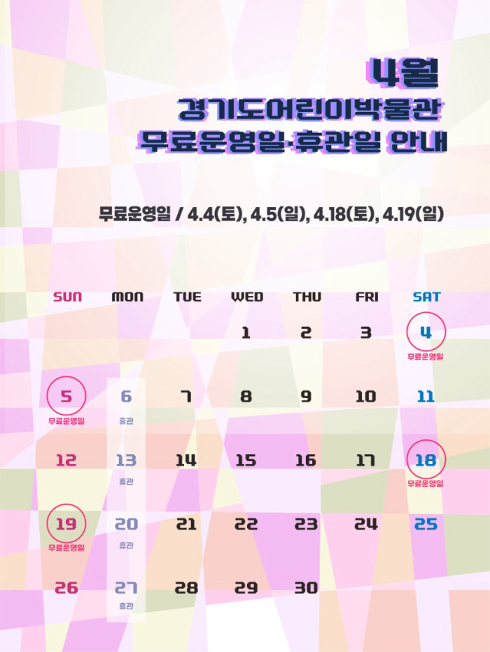 [경기도어린이박물관] 4월 무료운영일 및 휴관일