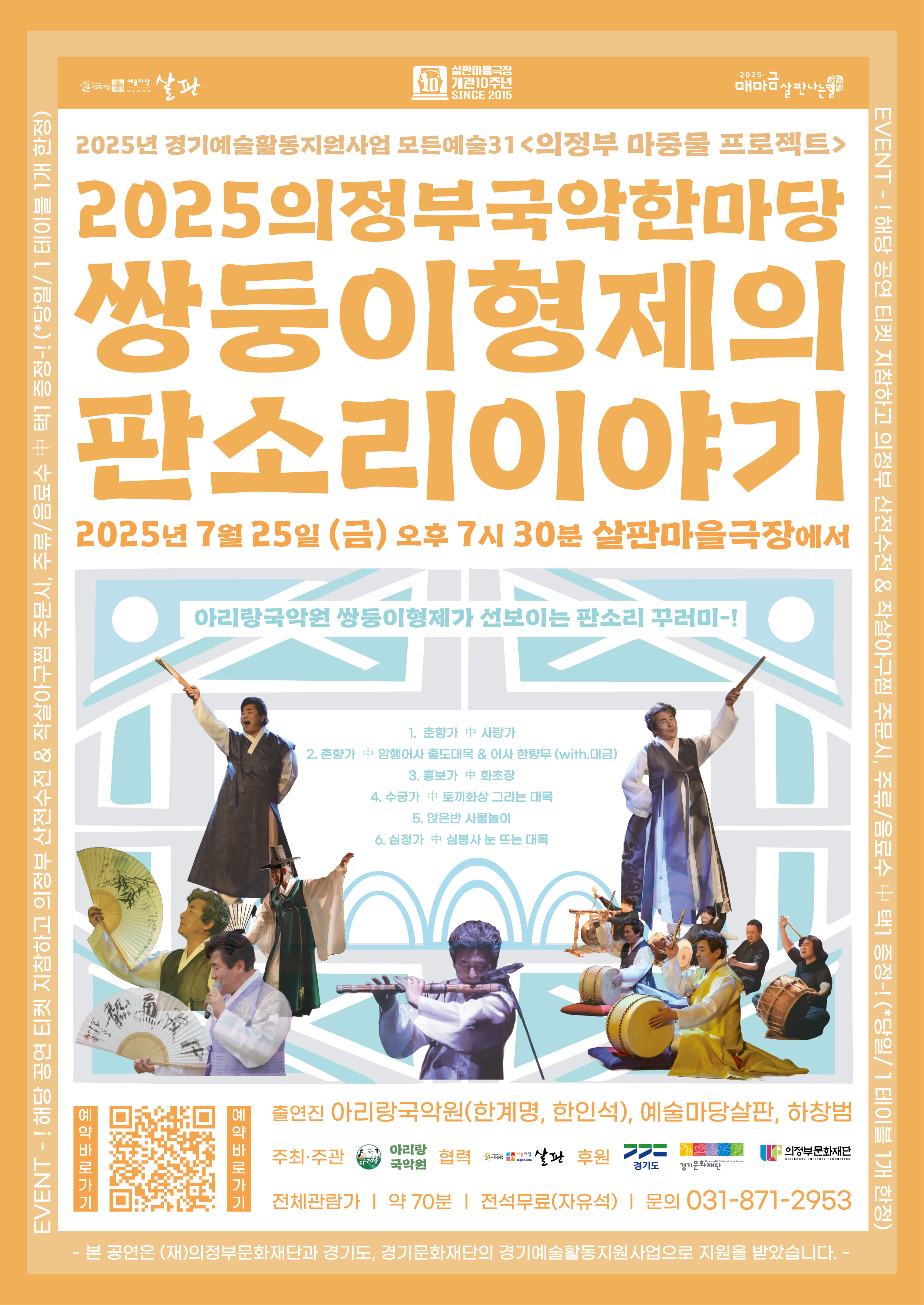 [전석무료] 7월매마금공연-아리랑국악원 <쌍둥이형제의판소리이야기>