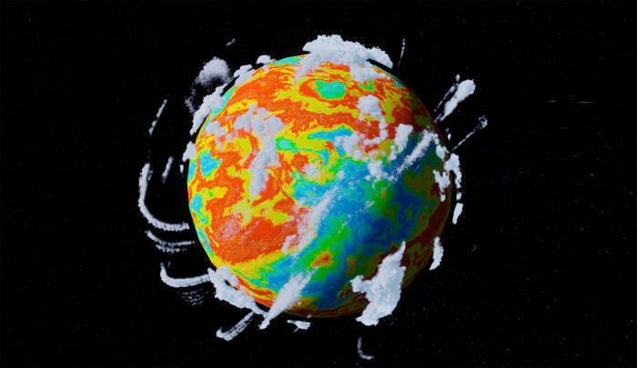 장진승, 에어로스트라타(버전.0), 2025, 기후 예측 시뮬레이션 모델, 가변설치, 경기도미술관 커미션