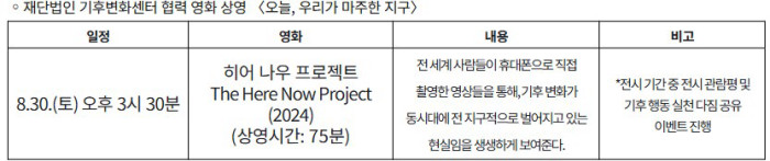 ▶ 재단법인 기후변화센터와 전시 연계 프로그램 협력: 오픈 특강, 영화 상영 진행