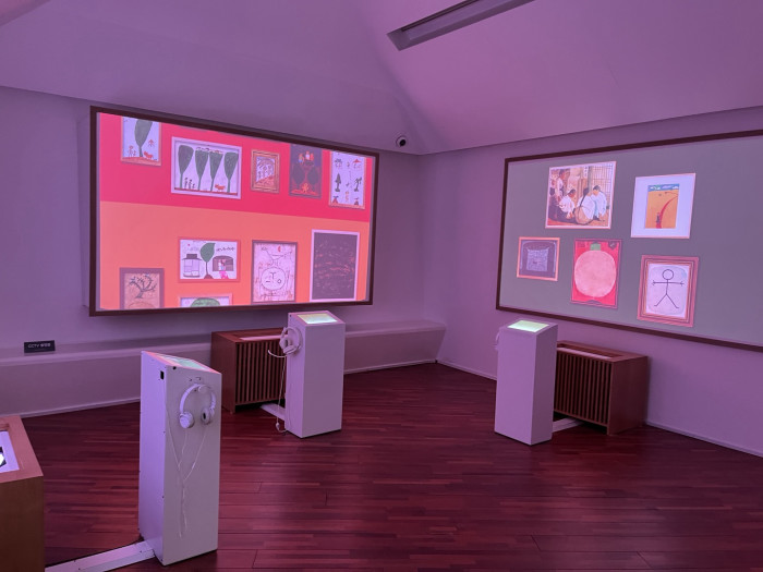 ◇ 이실아 : 상설전이 진행 중인 미술관 2층에 ‘장욱진 라이브러리’가 마련돼 있어요. 이 공간에서는 대형 스크린과 키오스크를 통해 장욱진 화백의 예술 세계와 생애를 주제별로 탐색할 수 있습니다.