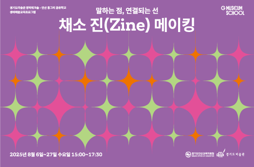 두 번째 워크숍(2025.08.06/13/20/27) 말하는 점, 연결되는 선 <채소(Zine) 메이킹>은 초등학생(4~6학년)을 대상으로 한 프로그램으로 8월 6일(수)부터 매주 수요일 4회에 걸쳐 진행된다. 안산의 로컬푸드를 관찰하고 그 안에서 발견되는 작고 특별한 징후들—기후변화 속에서 나타나는 점들—을 기록하여 한 권의 작은 잡지(Zine)로 만들어보는 창작 활동이다. 참여하는 학생들은 자신이 살고 있는 지역 생태를 새롭게 바라보고, 기후변화와 우리의 일상이 어떻게 연결되어 있는지를 고민해 보는 뜻깊은 경험을 하게 될 것이다. 두 워크숍의 결과물은 프로그램 종료 후 미술관 아트숍 내 갤러리 공간에서 전시된다. 참여자들의 창작물이 전시를 통해 다른 관람객들과도 그 이야기를 나눌 예정이다.