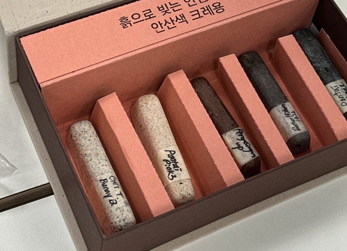 첫 번째 워크숍(2025.08.02./09/16/23) 흙으로 빚는 안산이야기 <안산색 크레용>은 안산 지역의 흙으로 직접 비건 크레용을 만들어 그림을 그려보는 체험이다. 초등학교 3~6학년 어린이를 포함한 가족을 대상으로 하며, 8월 2일(토)부터 매주 토요일마다 4주간 진행된다. 참가자들은 흙으로 그려진 회화작품을 감상하고, 미술관 주변을 산책하며 흙을 채집하고 자연을 관찰한다. 채집한 흙으로 직접 만든 크레용을 사용해 안산의 야생동물 가족을 그려보며, 지역의 흙과 생명에 대해 깊이 생각해 보는 소중한 시간이 될 것이다.