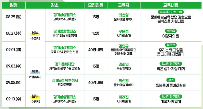 ▶ 경기문화재단, 2025년 8월부터 9월까지 문화예술교육 매개자 맞춤형 연수 운영