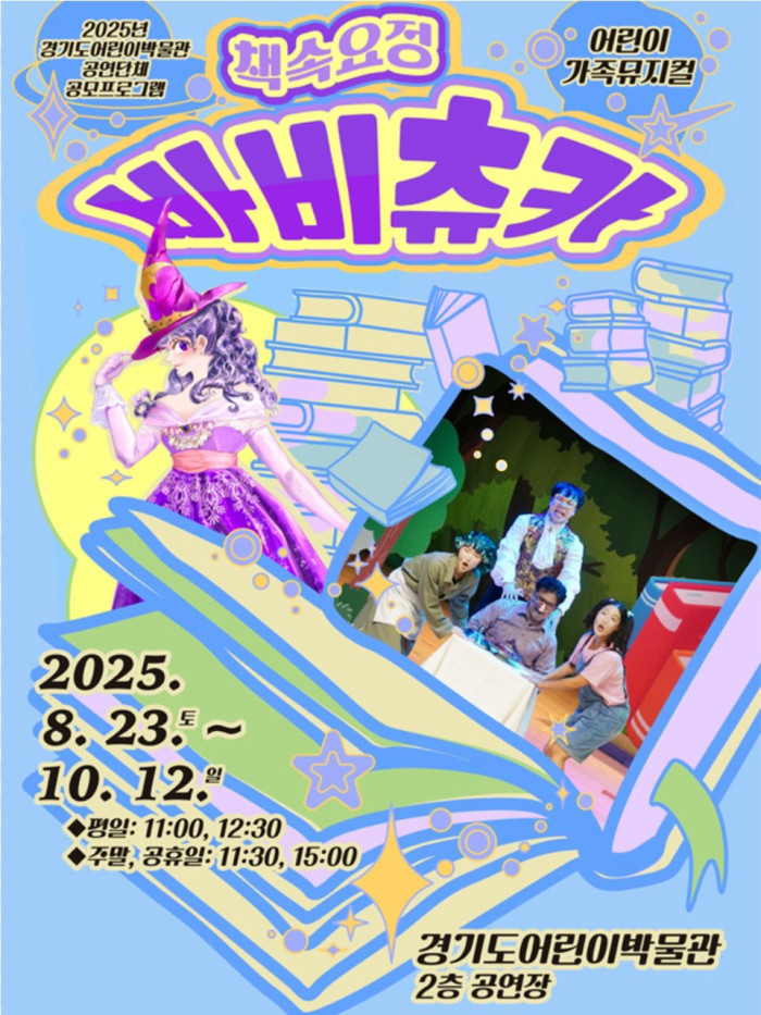 경기문화재단 경기도어린이박물관은 오는 8월 23일부터 10월 12일까지 어린이 가족 뮤지컬 <책 속 요정 바비츄카>를 선보인다. 공연예술단체 ‘뮤지컬샵’이 제작한 이번 작품은 아이들에게 책의 소중함과 상상력의 즐거움을 전하는 참여형 창작극으로, 경기도어린이박물관 2층 공연장에서 펼쳐진다.