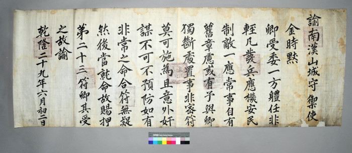 2부〈용호龍虎, 호방하고 용맹하게 일어나〉에서는 수어청·수어사 중심의 군사 지휘 체계의 정비와 정조 대 군사 개혁을 다룬다. 특히 정조가 자주 국방을 위해 직접 간행을 지시한 병법서 『어제병학지남』(남한산성 개원사판)이 눈길을 끈다. 이 병서는 한자 본문에 한글 해설을 병기해 병사들이 쉽게 이해할 수 있도록 편찬되었으며, 남한산성이 ‘읽고 훈련하는 군사 도시’였음을 보여준다. 전시에서는 이를 미디어아트 영상으로 구현해 유물의 역사적 가치를 부각했다. 이와 함께 영조가 수어사 김시묵에게 내린「밀부유서」와 좌승당 편액의 복원 가능성을 보여주는 『좌승당기 편액 탁본첩』도 처음 공개된다.