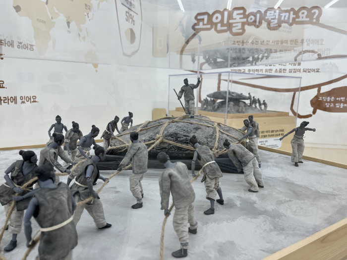 ◇ 이실아 : 맞아요. 자세히 보면 돌을 끌고 있는 사람들의 표정이 환하게 웃고 있는 장면이 많거든요. 아이들이 단순히 돌만 보는 게 아니라, 그 돌을 움직인 사람들의 모습까지 함께 볼 수 있도록 의도가 담겨 있습니다.