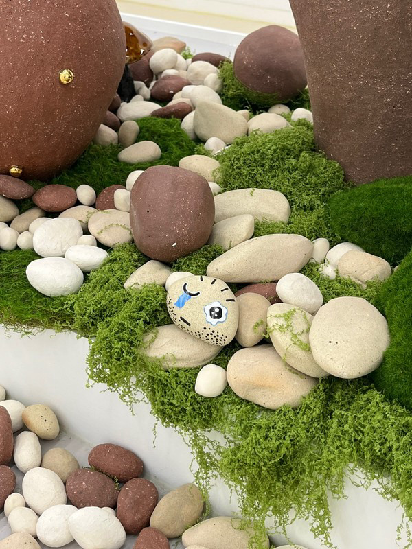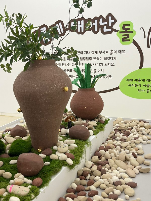 [인터뷰 / 참여작가 장유정] “이번 전시에 참여한 작품은 모두 5점인데, 작품의 제목들은 모두 <골든 볼 항아리>라고 지었어요. 자연 속에 있던 돌들이 사람의 손길을 거쳐 감정을 담은 새로운 존재로 변하는 과정을 표현한 작품들입니다. 거칠고 단단한 흙으로 돌의 질감을 살려서 항아리를 만들고, 그 안에 도자기로 만든 식물을 심어서 자연과 생명이 어우러지는 모습을 표현했어요. 아이들이 ‘반려돌 꾸미기’ 체험을 통해 돌처럼 생긴 도자기에 눈과 표정을 그려 넣으며 자신만의 감정과 이야기를 담는, 생명력을 불어넣는 시간을 경험했으면 합니다. 이 경험을 통해서 아이들이 돌이라는 평범한 자연물에 마음을 담고 이야기를 건넬 수 있는 기회가 되기를 바랍니다.”