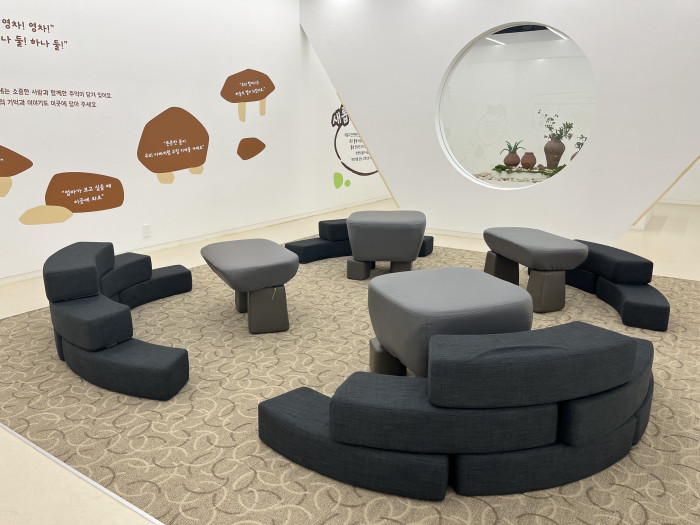 [인터뷰 / 참여작가 하석홍] “사실 돌이라는 매개체가 살아있지 않은 것처럼 보이지만, 우리의 시간을 품고 있고, 어떤 자연의 기억처럼 남는 것입니다. 그래서 이 돌이 단순한 어떤 물질이 아니고, 우리의 모든 삶에 대한 바람과 어떤 물결 같은 것을 담는 감각의 그릇으로 접근했습니다. 아이들에게 이런 작업들을 통해서, 고정된 돌이 아닌, 움직이고 살아 숨 쉬는 감각의 풍경으로 다가갈 수 있도록 작품을 의도해서 설치, 전시하게 된 겁니다. 아이들에게 촉감으로도 느낄 수 있도록, 만져도 볼 수 있게 제가 의도를 했거든요. 그리고 이 전시가 어떤 시각적 자극을 넘어 ‘돌이란 무엇인가’를 한 번쯤 떠올릴 수 있게 해주는 그런 역할을 하기를 바랍니다.”