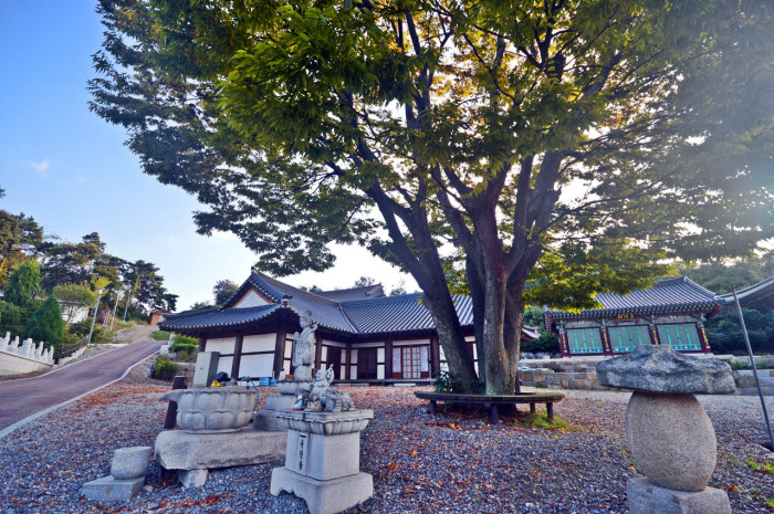 나무 뒤로 보이는 건물은 템플관이다. 수도사는 템플스테이도 운영 중이다.
