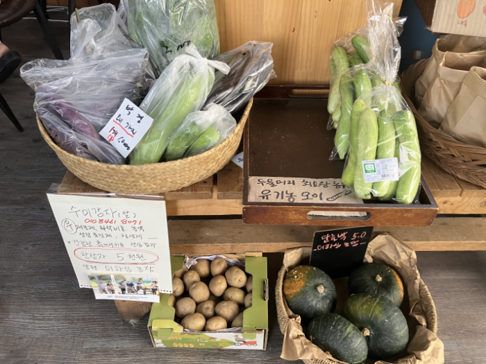 효정 : 시작이 그래서 지금도 식자재 같은 것들은 판매도 하지만 농부님들께서 쓰라고 가져다주시는 것들을 사용해요. 단호박 같은 것도 동네 농부님이 “나, 이거 못 팔아. 여기서 써.”하고 박스로 가져오시는 거예요. 상추 납품하시는 분도 “상추 팔다가 이제 하나 남았어. 이건 팔지 말고 그냥 너네 써.” 이러고 많이 주세요. 도움이 그런 식으로 계속 이어져 왔어요.