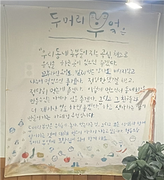 효정 : 조합원은 식사값에서 천 원을 할인 받아요. 이것을 조합원들이 오히려 걱정하면서 “우리 싸게 주지 마라. 똑같이 만 원 내고 먹겠다.”는 분들도 있어요. 하지만 우리는 협동조합의 부엌이고 위탁 운영하고 있는 거니까 운영진이 할인을 쭉 밀고 간 거예요.