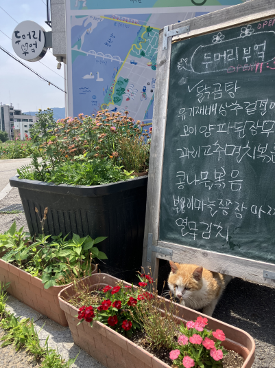 알록 : 저는 용담리에 살고 있고요 이 지역으로 온 것은 7년이 좀 넘습니다. 두머리부엌에서는 일주일에 3일간 일을 하는데, 홀 담당이라 손님을 응대하고 효정이 상회에 물건을 올려주면 부엌에서 백반을 판매하는 동안 상회 물건을 같이 판매하고 있습니다. 전에는 2년 간 상회 담당이었습니다.
