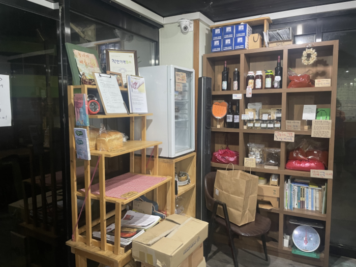 한여울 : 효정 같은 경우에는 전부터 협동조합과 쭉 이어져왔고 조합의 역사에도 아주 잘 알고 깊이 관여하고 있었어요. 내가 동네 주민으로서 효정을 봤을 때도 부엌지기였고 지박령처럼 술을 먹고 있었어요. 항상 뭘 갖다 주시던가, 와서 관심과 애정을 보여주시는 분으로 계셨던 거였죠. 저는 그냥 지나가는 손님이었던 거고요. 지금은 좀 바뀌어서 제가 위탁운영자로 여기 있는 안전한 먹거리를 소비자에게 맛있게 전달해야겠다고 생각하고 있지만요.