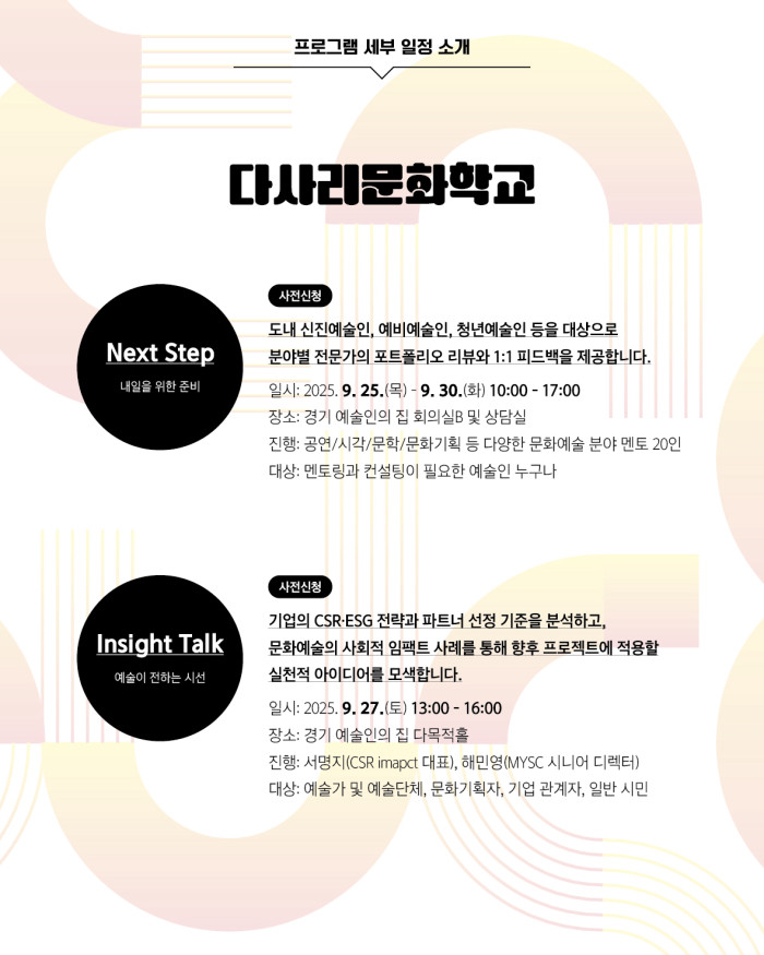 ※ 프로그램별 세부 일정 및 장소, 참석 대상은 하단 안내표 확인