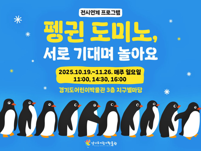 ○ 이지영 작가의 ‘펭귄 도미노, 서로 기대며 놀아요’ (10.19.-11.16. /매주 일요일 오전·오후 총 3회)