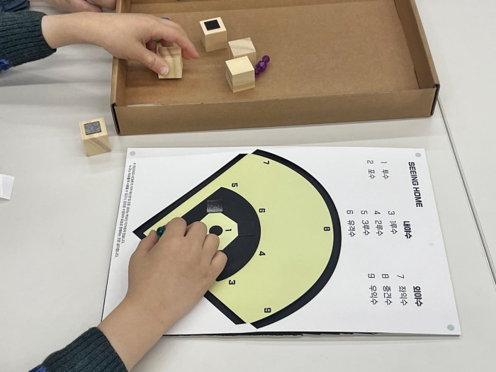 ‘누구나 야구 게임 : 포스트 시즌’은 박유진 작가의 촉각 기반 작품 ‘SEEING HOME’을 기반으로 새롭게 개발한 교육 프로그램 키트로 진행한다. 서로 다른 감촉의 재료로 게임판을 만들고 청각과 촉각을 활용해 야구 놀이를 체험하는 활동으로, 장애와 비장애의 구분 없이 모두가 즐길 수 있도록 기획됐다. 기존 참여자들은 “야구를 잘 몰랐는데 배울 수 있는 기회가 되었다.” “시각장애인의 마음을 이해할 수 있는 시간이었다” 등 소감을 남겼으며, 이는 작가의 기획 의도를 고스란히 보여준다. 모두가 함께 즐길 수 있는 이 프로그램은 ‘모두에게 열린 박물관’이라는 경기도어린이박물관의 가치를 실천하는 대표 사례로 평가 할 수 있다.