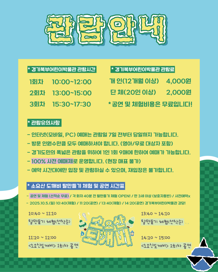 관람료 │ 공연 및 체험 선착순 무료 (별도 사전 예약x, 만 3세 이상 보호자동반) / 경기북부어린이박물관 입장료 별도