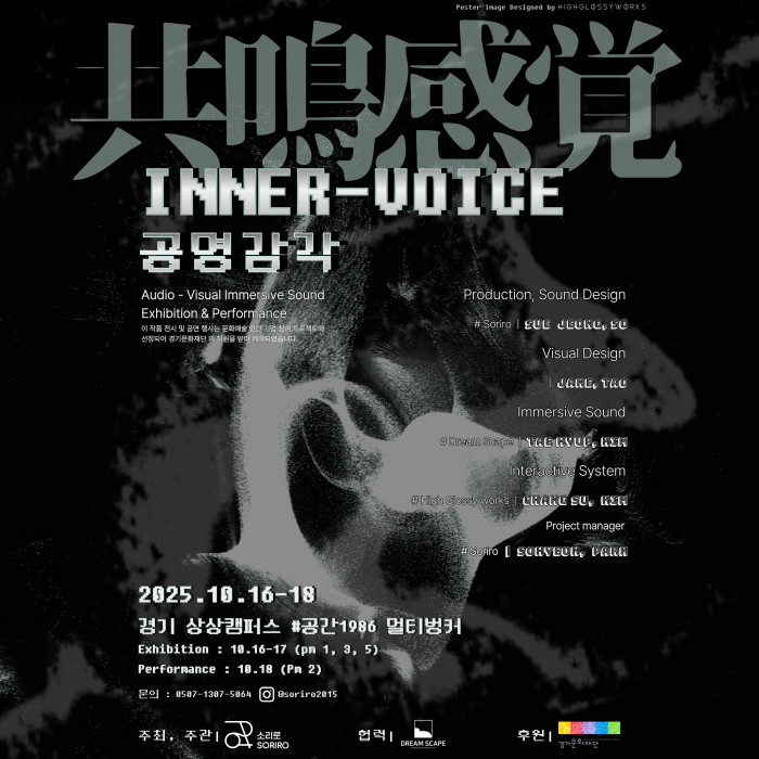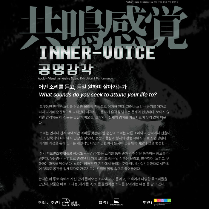 전시 퍼포먼스 《INNER VOICE – 공명감각》은 소리를 새로운 시각으로 바라보는 몰입형 오디오·비주얼 전시입니다.