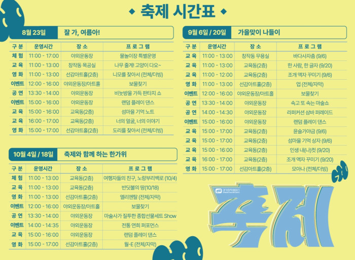 경기창작캠퍼스 9월 ‘축제’와 함께 떠나는 가을 예술 소풍