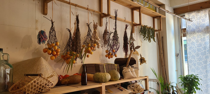 그런데, 이곳을 왔다갔다 할 때, 시시장이라고 친구들이 만든 장터가 있었어요. 거기에 셀러로 참여해서 그냥 내가 만든 거 서너 개 봉투에 넣어서 판 게 처음이었어요. 잼, 그래놀라, 호연 씨가 작은 텃밭에서 수확한 방울토마토 같은 걸 건조해서 마리네이드 만들고요. 그런 걸 만들어서 몇 병씩 파는 게 처음이었어요. 처음 가게를 해보면 어떨까 했을 때, 처음 떠오른 것도 내가 익숙한 것들이었어요. 그런 것부터 해야겠다는 생각이었죠. 잼, 그래놀라 정도 생각했는데, 지금은 늘어났어요. 소스도 만들고 쿠키도 다양하게 만들고요. 가게를 시작한 건 큰 결심이었지만 그 전에 아무것도 없다가 짠~ 해서 식료품점을 시작한 것은 아니었어요. 제가 자주 만들어 먹었고 친구들한테 선물로 주기도 했었던 식품들로 먼저 시작을 한 거죠.