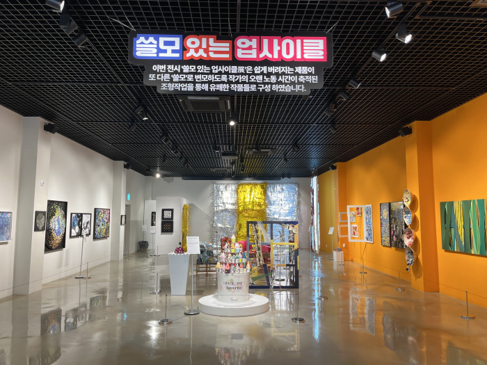 ◇ 이실아 : 그래서 요즘은 단순히 ‘버리는 것’이 아니라 ‘다시 어떻게 활용할 것인가’에 대한 고민이 더 중요해진 것 같아요. 오늘은 이와 관련한 해답이 될 전시를 소개해 드리려고 합니다. 바로 광명업사이클아트센터에서 펼쳐지고 있는 예술전시 《쓸모 있는 업사이클》입니다.