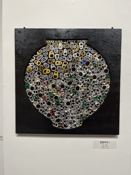 ◇ 이실아 : 네! 이번 전시의 포인트가 바로 그거거든요! 단순히 플라스틱 뚜껑, 캔 같은 폐기물을 활용한 작품이라는 걸 넘어서, 그 안에 담긴 아이디어와 메시지가 굉장히 인상 깊습니다. 그리고 재료 선택부터 활용 방식까지, 여성 작가 4인의 특유의 섬세함이 돋보인답니다.