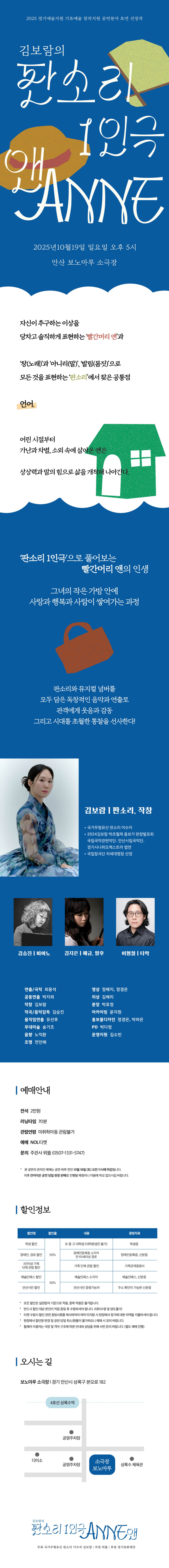 '판소리 1인극'으로 풀어보는 빨간머리 앤의 인생
