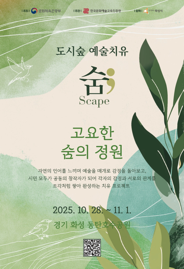 문화체육관광부(장관 최휘영)와 한국문화예술교육진흥원(원장 직무대리 박창준, 이하 교육진흥원)은 국민의 마음건강 돌봄을 위한 「2025 도시숲 예술치유」 사업을 전국 8개 도시에서 11월까지 운영한다.
