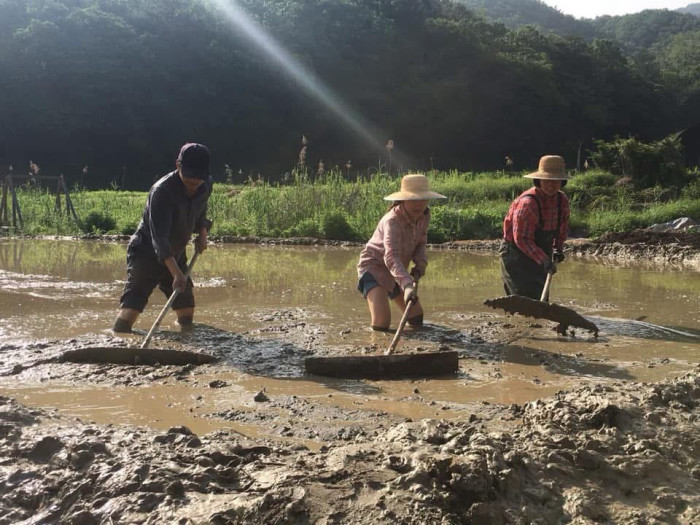 정국 : 2010년에 서울 명동성당에서 개설한 천주교 농부학교라는 데 들어갔어요. 제가 5기예요. 그러니까 주보에서 5년 동안 보다가 들어간 거죠. 제가 40대 중반 무렵이었는데 좀 어려웠을 때라서 서울을 떠나야겠다는 생각을 많이 하고 있었죠. 아내하고 얘기하고 그 농부학교에 들어갔어요. 천주교 농부학교에서는 이론만 가르쳐요. 그것도 환경, 자연이 중심이고 농사 얘기는 한 10분의 1 정도예요. 그런 입문 교육이 정말 중요해요. 왜 농사를 지어야 하고 왜 농부가 중요하냐, 농부의 자세는 무엇이냐 같은 정신적인 것에 집중하니까요. 다른 농부학교와는 다르죠. 그리고 농활처럼 가을에 농부들 도와주러 가고요. 가서 도우면서 체험 비슷하게 농부들이 사는 모습을 실제 접해보는 거죠.