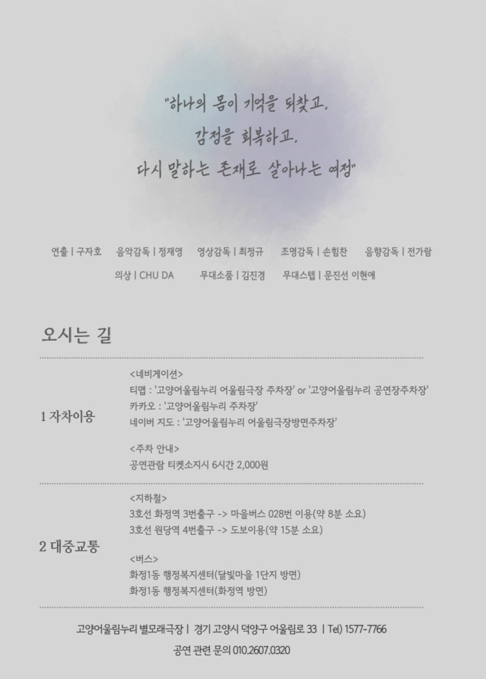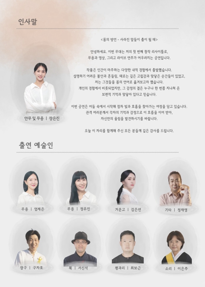 본 공연은 2025 경기예술지원 2차 생애 첫 공연 예술 분야 선정작으로, 경기문화재단의 지원을 받아 제작되었습니다.