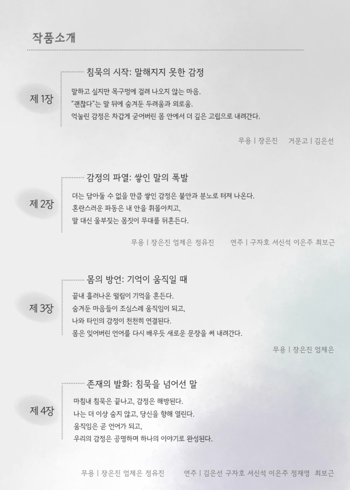 예술을 통해 감동과 감정을 나누는 시간이 되셨으면 좋겠습니다.