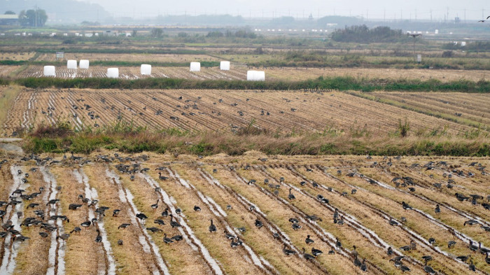 추수를 끝낸 김포평야는 철새들의 차지가 되었다.