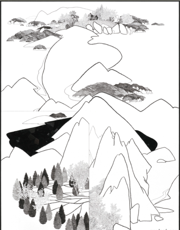 박영학(b.1973) 전통 산수화의 정신을 현대적 조형 언어로 재해석하며, 흑과 백의 절제된 풍경을 통해 명상적 사유를 담아내고 있다.