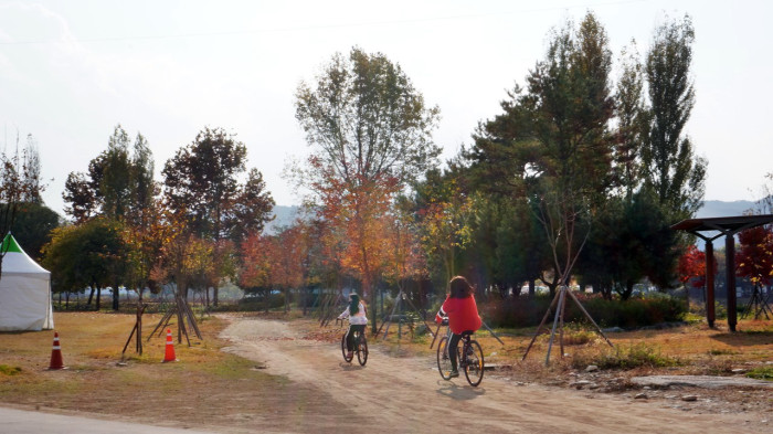 축제는 애당초 가평이라는 큰 단위의 자자체보다 자라섬이라는 작은 단위의 섬을 주체로 내세웠다. 1회 축제 때만 해도 자라섬은 지금처럼 유명한 섬이 아니었다. 관리되지 않은 황무지 같은 섬이었고 장마철마다 섬의 일부가 물에 잠겨 써먹기도 애매한 땅이었다. 같은 시점, 직선거리로 800m 떨어진 남이섬은 2002년 방영된 인기 드라마 <겨울연가>의 촬영지로 국내는 물론 일본인들에게도 큰 인기를 끌고 있었다. 두 섬 모두 1943년 청평댐이 준공되면서 생겨난 섬으로 그 기원은 동일하다. 그러나 두 섬의 행보는 다른 듯했다. 사실 남이섬은 섬으로 들어가는 선착장만 가평군에 속하고 섬 자체는 강원도 춘천시에 속한다. 네 땅 내 땅 나누긴 뭣해도 가평군 입장에선 연일 넘쳐나는 방문객으로 승승장구하는 남이섬을 보며 자라섬의 처지가 안타깝게 느껴졌을 것이다. 면적만 보면 남이섬보다 1.5배나 큰 자라섬이다.