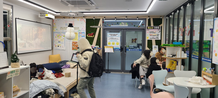 이 지역에 와서 느낀 건 서울도 마찬가지지만 청소년들이 편하게 쉴 수 있는 공간이 없다는 거예요. 더군다나 이 근처는 관광지이기 때문에 카페가 진짜 비싸요. 그래서 애들이 맨날 편의점 앞에 앉아있곤 해요. 그래서 이곳은 아이들이 편하게 쉴 수 있는 공간으로 만들었어요.