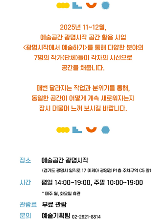 2025-11-06 ~ 2025-12-31 / 평일 14:00~19:00, 주말 10:00~19:00 ※매주 월, 화요일 휴관